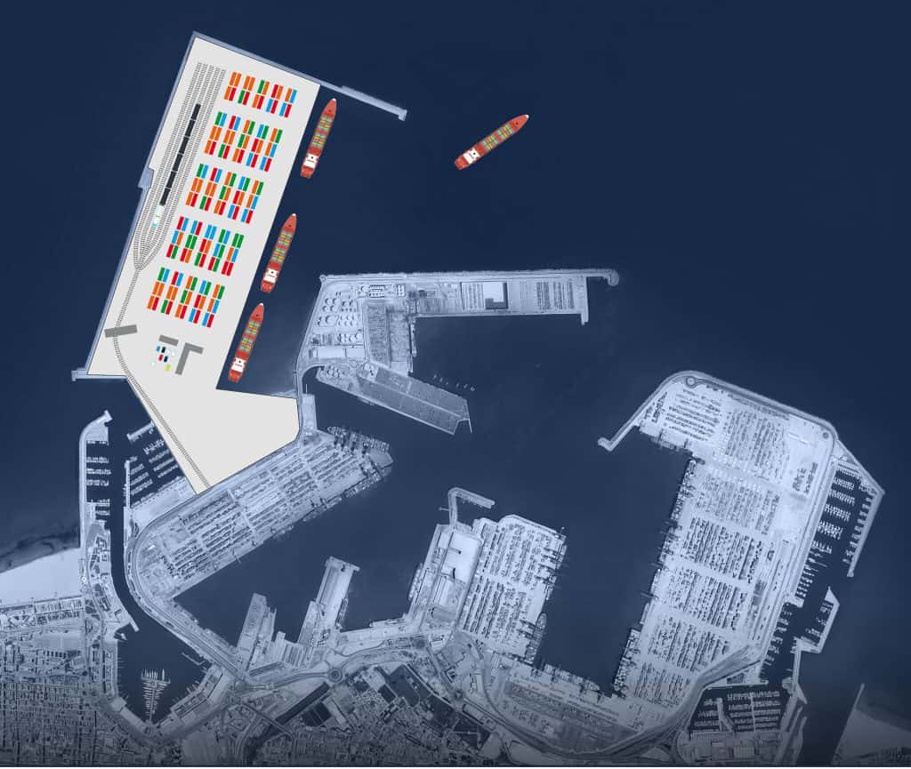 The terminal, which will be located in the sheltered waters of the northern extension whose works were completed in 2012, will have a surface area of 137 ha and 1,970 m of berthing line, with a capacity to hold 5m containers.