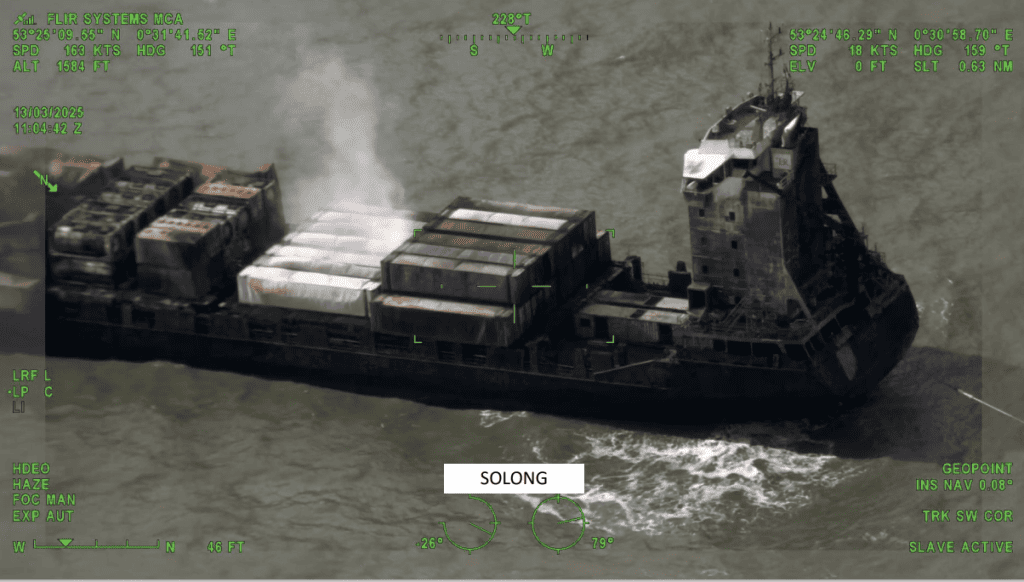 UPDATE 17/03/2025: As of Friday 14 March, small periodic pockets of fire remained on the SOLONG, but were not of much concern to the HM Coastguard.