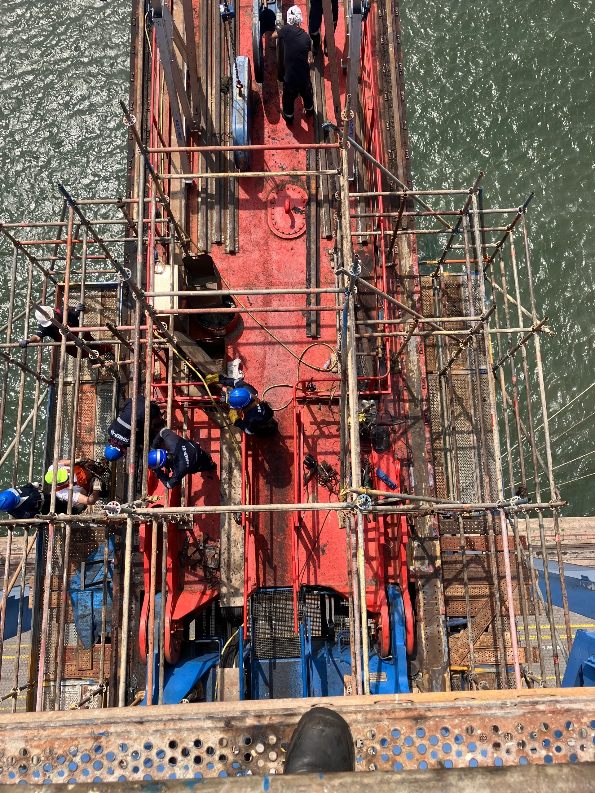 The project scope for the cranes in Abidjan included replacement of forestay and pivot point bearings, trolley rails, short rails and trolley and guide wheels.